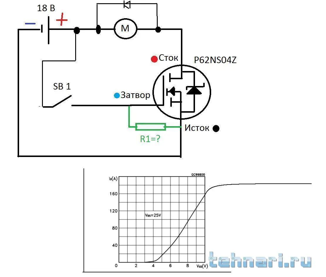 За коммутацию тока отвечает мосфет транзистор p62ns04z (даташин на него прилагаю), немного запутался, не могу найти в даташите напряжение открытия транзистора, и будет ли работать схема которую я изобразил?