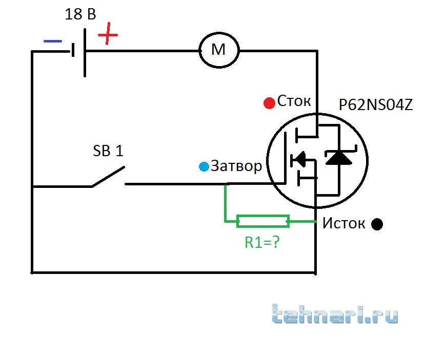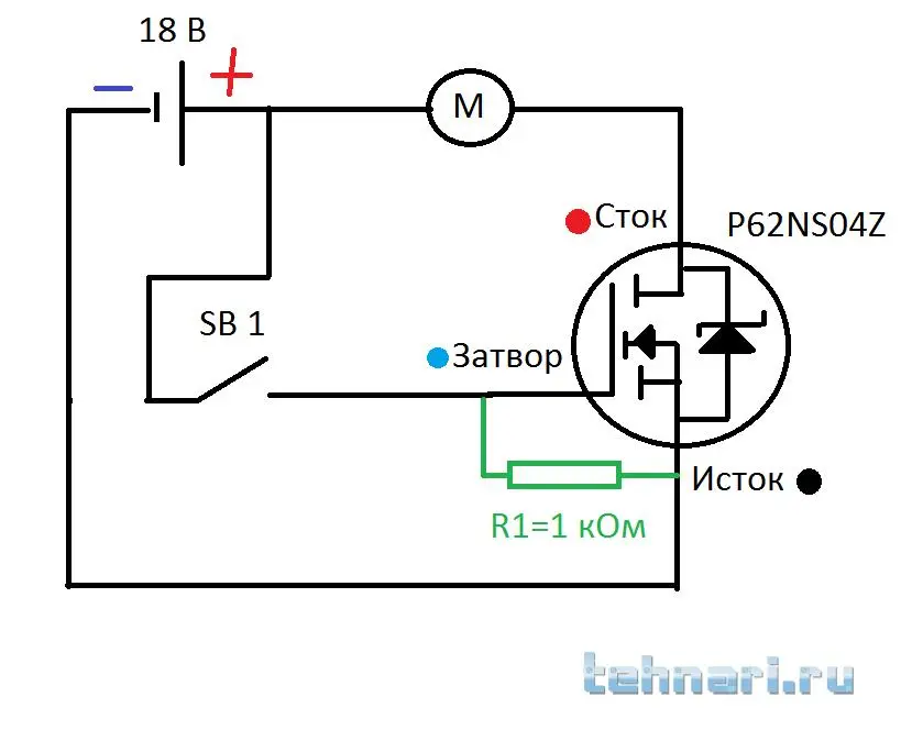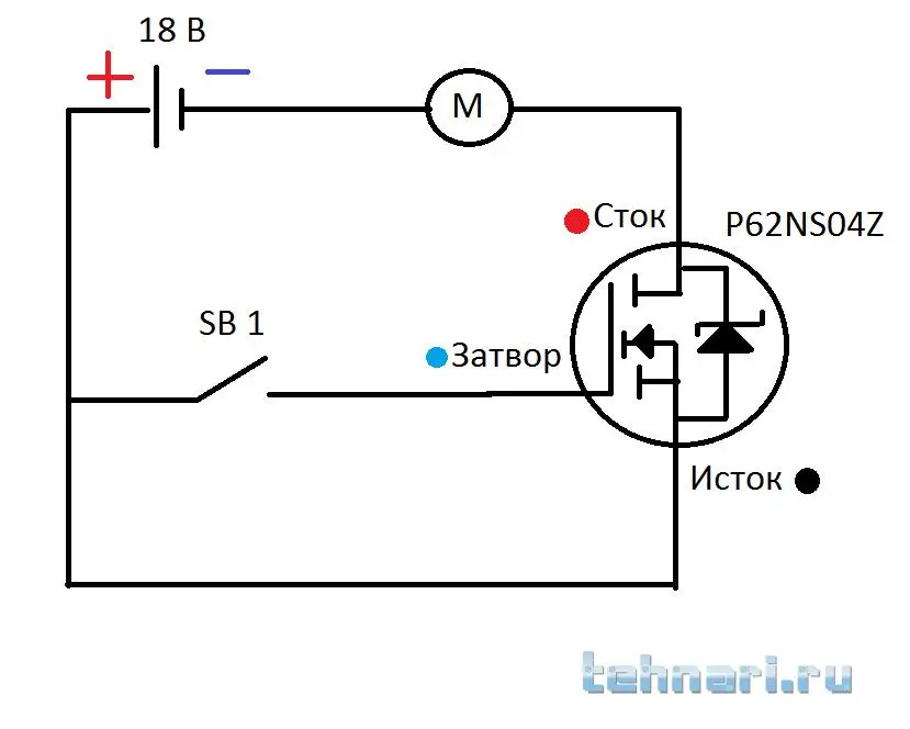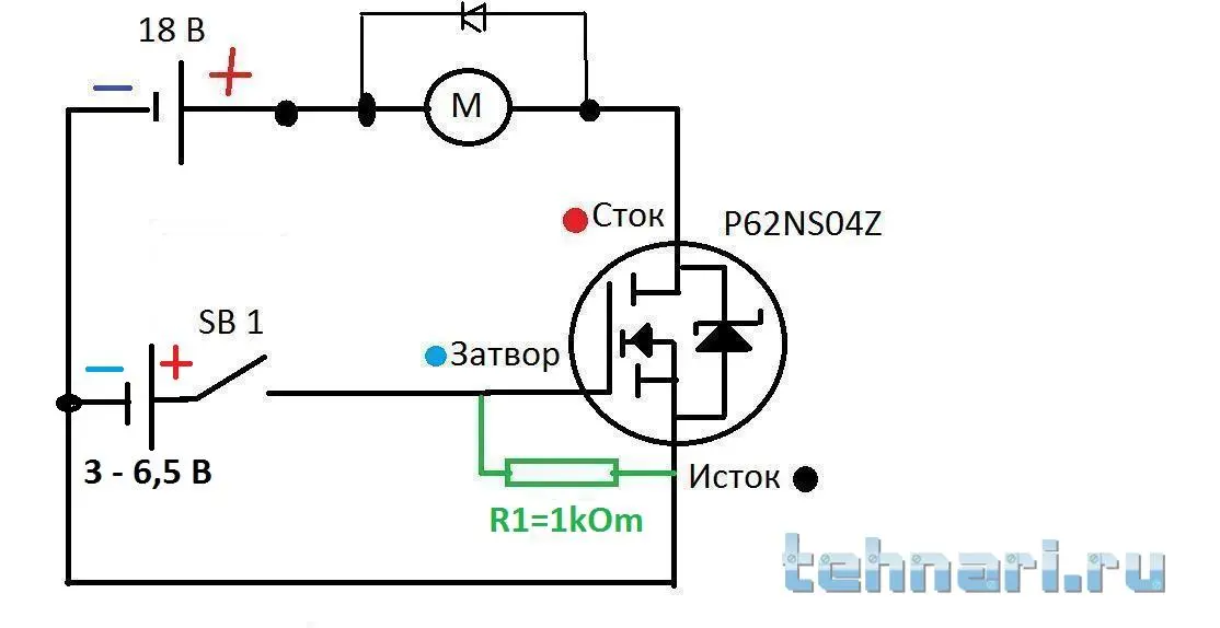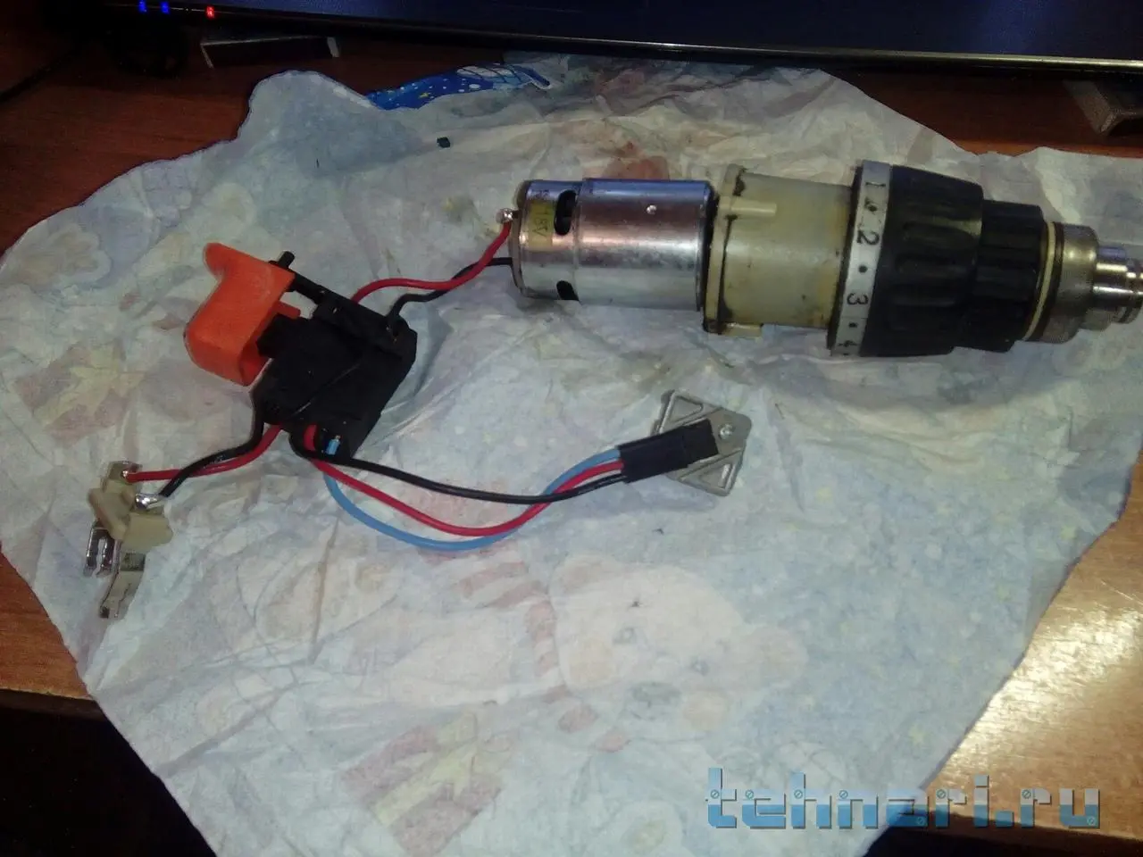 Необходимо запустить электрический двигатель от шуруповерта используя не родную кнопку, а обычную маленькую тактовую кнопку.