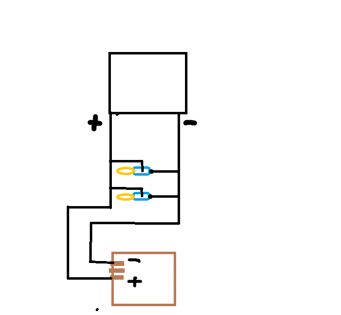 У меня дома лампочек на 2.5 В очень много. Т.е две лампочки подключать вот так?? Или плюс на плюс лампочки и от лампочки на аккумулятор, не подключая минус к лампочке??