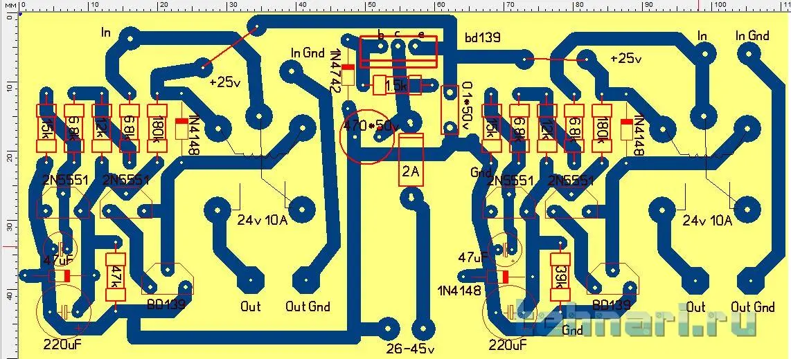 Питание 2 транса от принтера, вродебы 32.5в на каждом полюсе. Банки 6800+на оба канала по 2200мф.