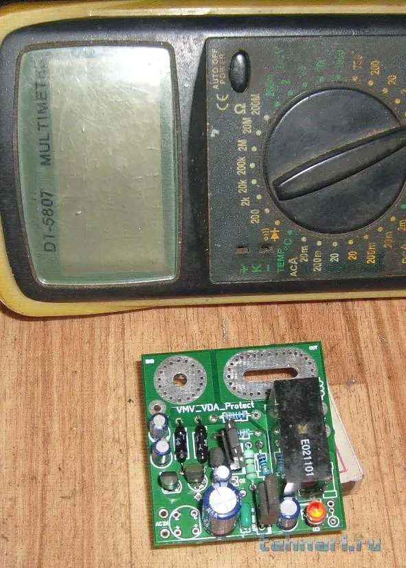 Но в сети много видео с реализацией защиты АС китайского КИТа. Вот схема данного устройства. Автор схему конечно изобразил с ошибками, поэтому я внёс в неё коррективы. Я сам прикупил 5 платок этой схемы (без компонентов) и собрал одну из той "россыпи" что была под рукой (на фото).