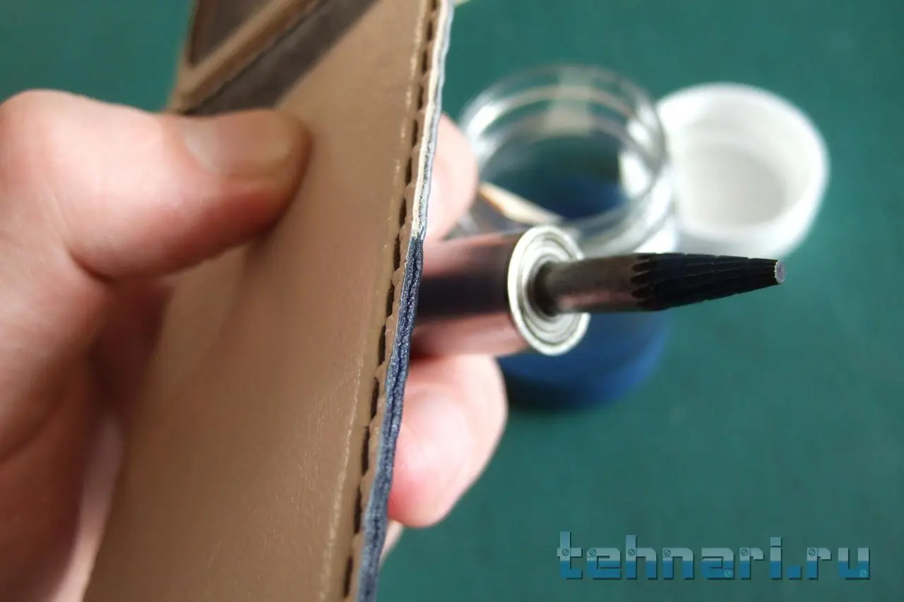 Натирать воском и полировать торцы не стал - побоялся запачкать бежевую кожу.