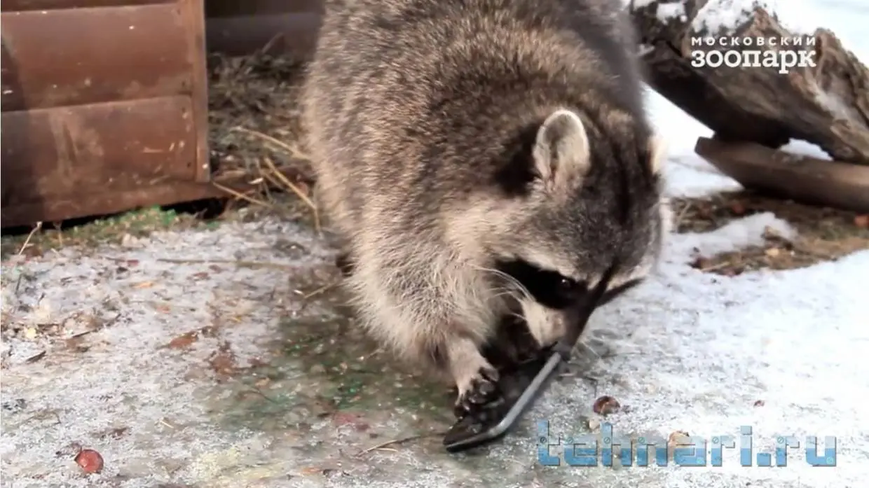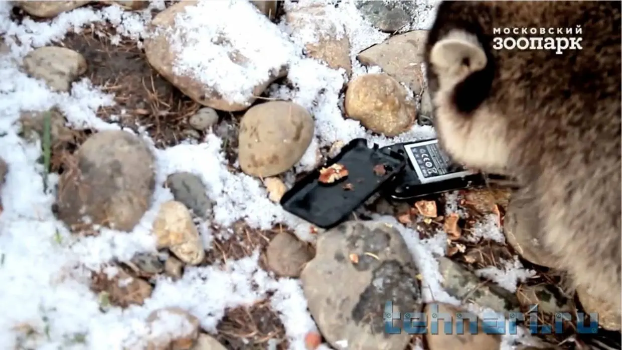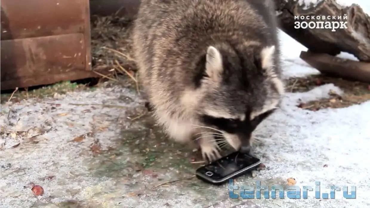 Представители московского зоопарка показали, что случится в гаджетом, если тот все-таки попадет к еноту.